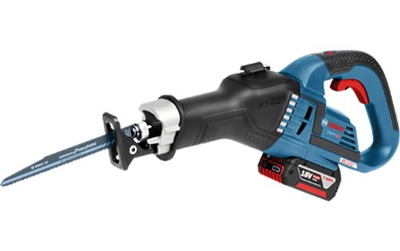 Adjustable base plate for full use of the saw blade | 06016A8107 - GSA 18V-32 Professional | | Stroke rate at no load | 0 – 2.500 min-1 | | Stroke length | 32 mm | | Cutting depth in metal pipes/profiles | 175 mm | | Battery voltage | 18 V | | Battery capacity | 5,0 Ah | | Shipping dimensions (LxWxH ) | 358x443x256 mm | | Weight incl. battery | 3,5 kg | Included items: -
