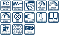EC motor, when paired with an 18V Bosch Lithium-Ion Technology battery, delivers corded power with cordless freedom -